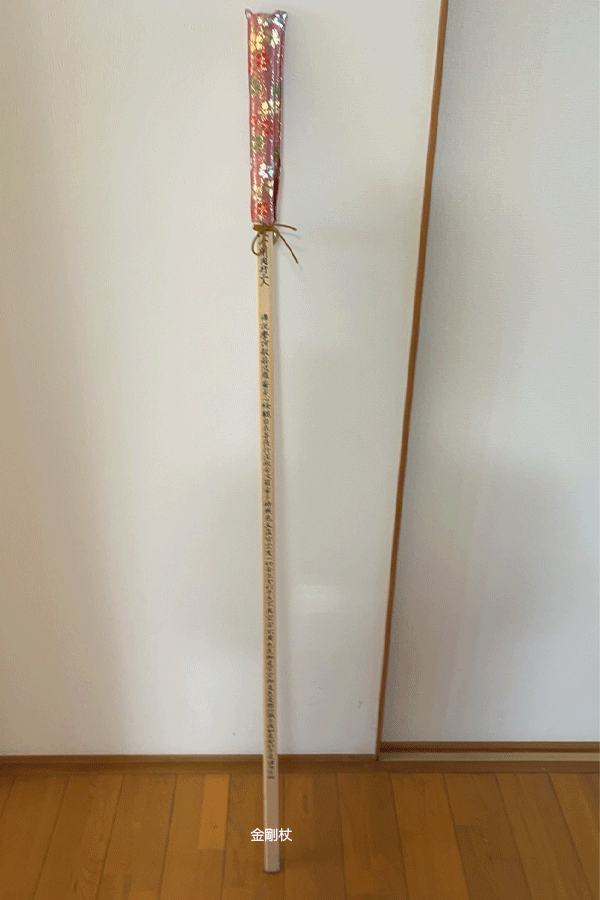 • 杖(必要な場合)金剛杖 弘法大師様の分身であり、常に同行して支えてくださっているという意味が込められています。また厳しい歩き遍路では、巡拝途中になくなった場合、墓石の代わりになると考えらています。